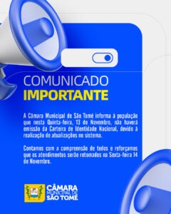 Informamos à população que nesta Quinta-Feira 13 de Novembro as emissões da Carteira de Identidade Nacional (CIN) retornaremos na Sexta-Feira, dia 14 de Novembro. Agradecemos